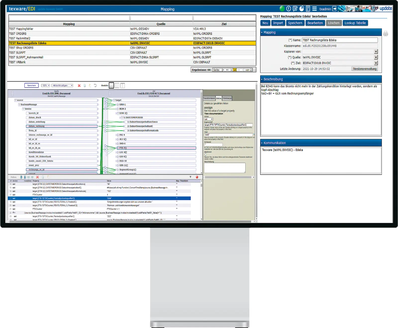 texware/EDI enables you to securely and automatically exchange electronic documents such as orders, invoices and delivery bills with your customers, business partners and suppliers. The platform supports the sending and receiving of numerous types of electronic messages and their conversion into various formats and can be easily used in conjunction with the ERP solution texware/ERP or integrated into your existing IT infrastructure.