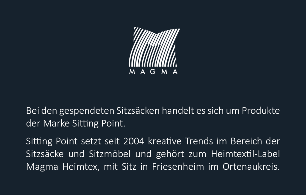 Ein großes Dankeschön geht dabei an den renommierten Heimtextilhersteller, der es durch sein großzügiges Entgegenkommen ermöglicht hat, dass wir die Anzahl der Sitzsäcke sogar noch deutlich aufstocken konnten.